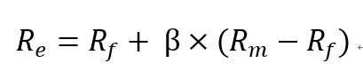 Re: 주주 자본 비용, Rf: 무위험 이율, Rm:시장 전체 기대 수익률, Rm-Rf: 시장 위험 프리미엄, β: 주식의 시장 민감도