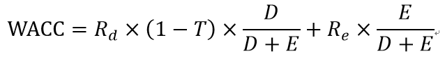 Rd : 부채 비용(세전), Re : 주주 자본 비용, T: 실효세율, D: 유이자 부채 E: 주주 자본